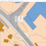 Gemini RoadVisor calculates tracking curves for wheels, body, and cargo dynamically based on Handbook N100 and real vehicle behavior. Results are visualized in plan and 3D, enabling precise evaluation of turning radii, clearance requirements, and collision risks before construction.
