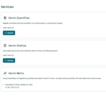 Gemini Connected integrerar tjänster som Cloud Projects, Gemini QuantiFlow, Gemini Metrix, Gemini SiteFlow, visualiseringsverktyg och Insights. Dessa tjänster möjliggör effektivt datautbyte, standardiserad dokumentation och realtidsövervakning av projektet.